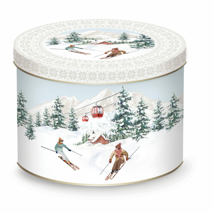 Kubek porcelanowy Narciarze, w pięknej zimowej odsłonie idealny do kawy, herbaty lub grzanego wina. Wykonany z najwyższej jakości porcelany i ozdobione subtelnymi motywami zimowymi. Piękna paleta ciepłych kolorów nawołuje do niezwykle przyjemnego okresu świątecznego i zbuduje odpowiednią atmosferę wokół Ciebie. Kubek zapakowany jest w metalowe pięknie prezentujące się pudełko, dlatego idealnie nadaje się także na prezent.