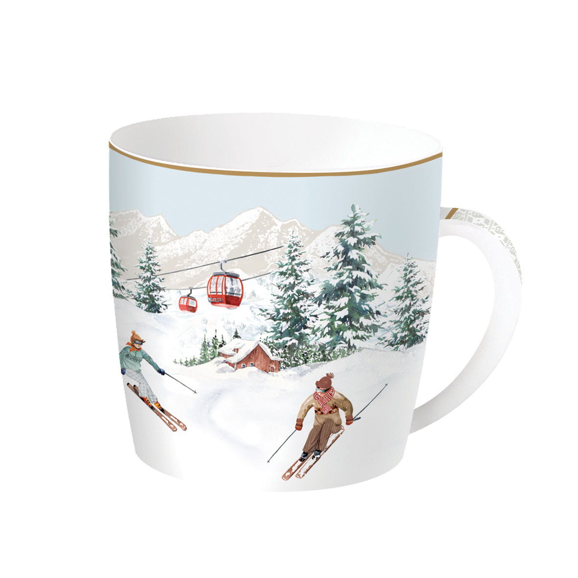 Kubek porcelanowy w ozdobnej puszcze Narciarze 350ml